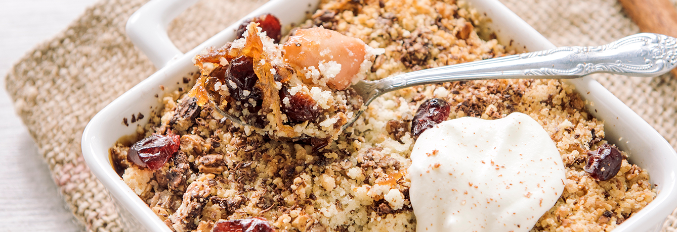 Healthy Baked Apple and Almond Crumble Pudding with Apple Cider Cream