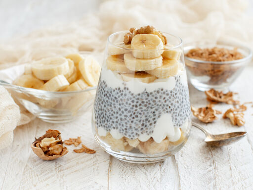 Banana Chia Seed Pudding - Mix 1 sliced banana with 1/4 cup of chia seeds and 1 cup of almond milk. Let it sit in the fridge for at least 4 hours. Total calories: 200