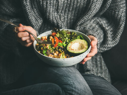 Last, add your carbs. While vegetables in the base do contribute carbohydrates, they are minimal and very low calorie. Consider adding a scoop of rice, quinoa, or couscous, even a portion of fruit can make your salad interesting. If not, a hunk of crusty bread will do the trick.
