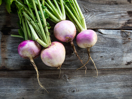 Multiple choice: Turnips are a) a root veggie, b) a cruciferous veggie (like broccoli, cauliflower, etc.), c) linked to reduced cancer risk, or d) all of the above. Amazingly, the correct answer is “D.” The mild-flavored, subtly-colored turnip tends to keep a low profile — both literally, as a root vegetable, as well as attracting nominal attention nutritionally. But we believe the bulb bears closer attention…