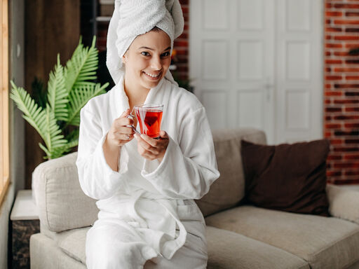 8:00 am Wake up. Put on your favorite robe and slippers. Light candle in bedroom and bathroom and turn on relaxing music.