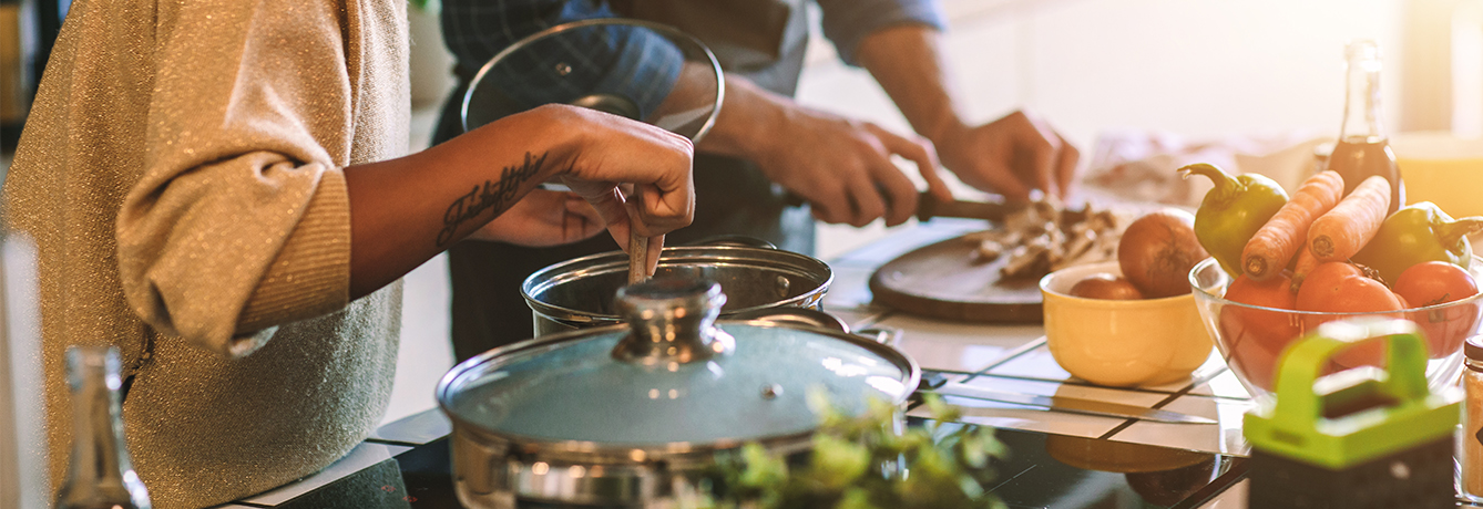 Spending a lot more time at home over the past few months have challenged us to rediscover and experiment with more cooking! Though it does not come easily to everyone, the beauty of home cooking is that there is no one right way to do it. Whether you lean on culinary shortcuts like salad kits to make easy and flavorful meals, or microwave baked potatoes and frozen veggies, or if you’ve been baking up a storm and inevitably creating a lot more dishes than usual — there may be a silver lining to it all, especially when it comes to our health.
