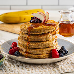 Apple Cinnamon Plantain Pancakes with Berry Compote