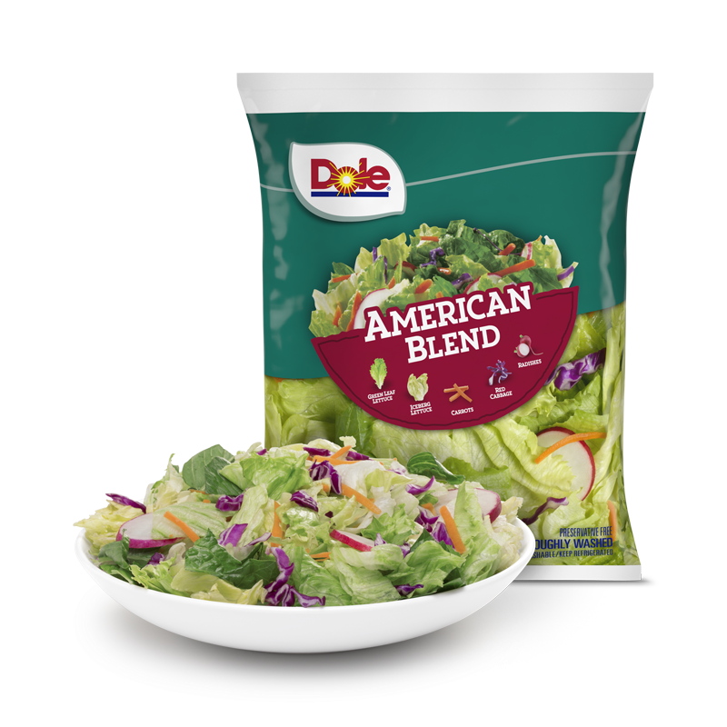 Mild and crunchy iceberg and green leaf lettuce, combined with a blast of color and taste from sweet carrots, tangy red cabbage and zesty radishes. Try with any style dressing, from creamy ranch to blue cheese!