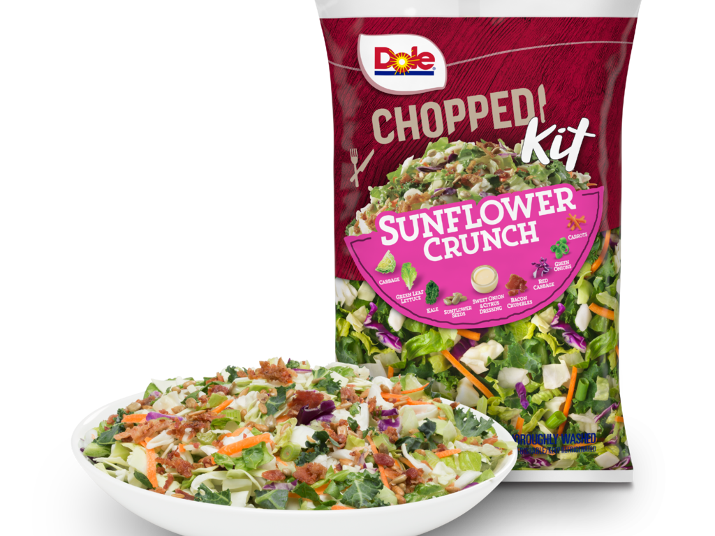 Sunflower Crunch combines green leaf lettuce, cabbage, and kale with bacon, sunflower seeds, carrots, green onions, and Dole’s Sweet Onion and Citrus Dressing for a true summer delight.