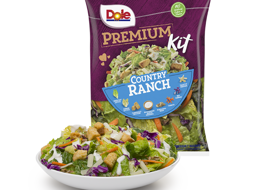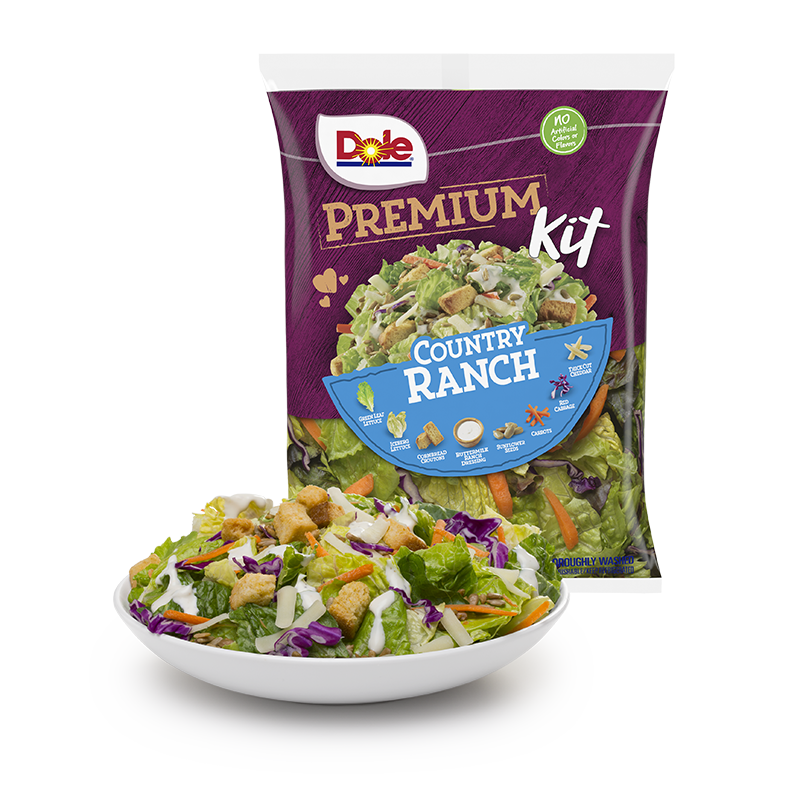 DOLE®'s Country Ranch Salad Kit brings America’s favorite dressing flavor together with savory cornbread croutons, artisan-cut white cheddar cheese, crispy Romaine lettuce, colorful fresh cut veggies and crunchy sunflower seeds. These craveable toppings combined with DOLE’s Country Ranch Buttermilk Dressing create a new ranch salad tradition that the whole family will love.