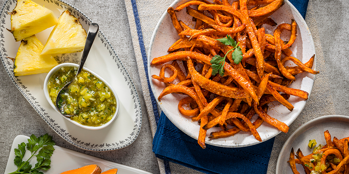 - Serve Sweet Potato Pommes Frites with Spicy-Pineapple Dip.