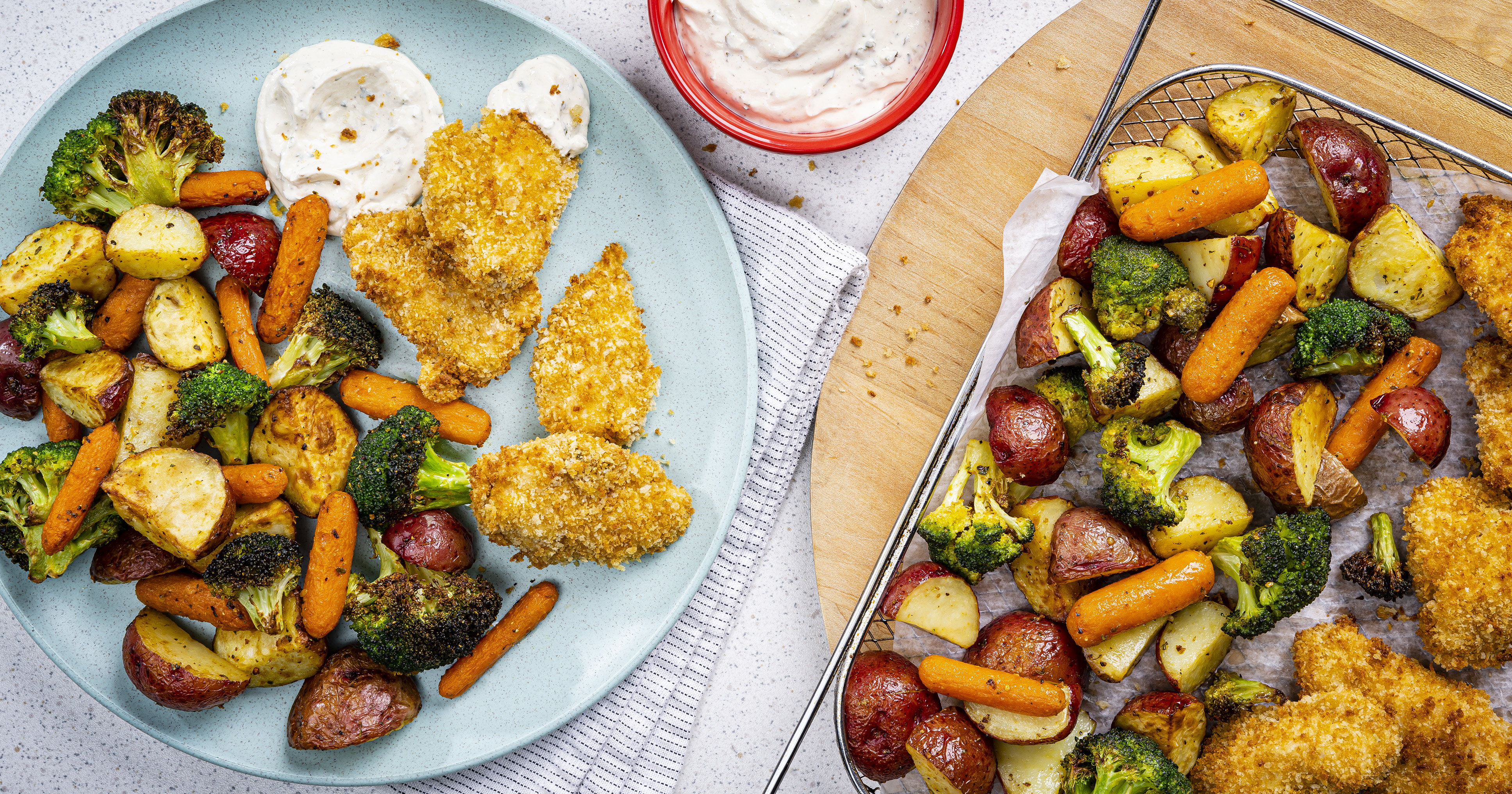 Air Fryer Lemon Parmesan Chicken Nuggets with Crispy Vegetables