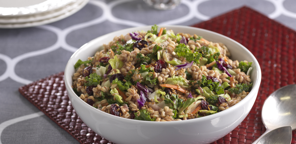 - Empty the contents of the salad kit into a large bowl, add the farro and gently toss together to coat with the dressing.