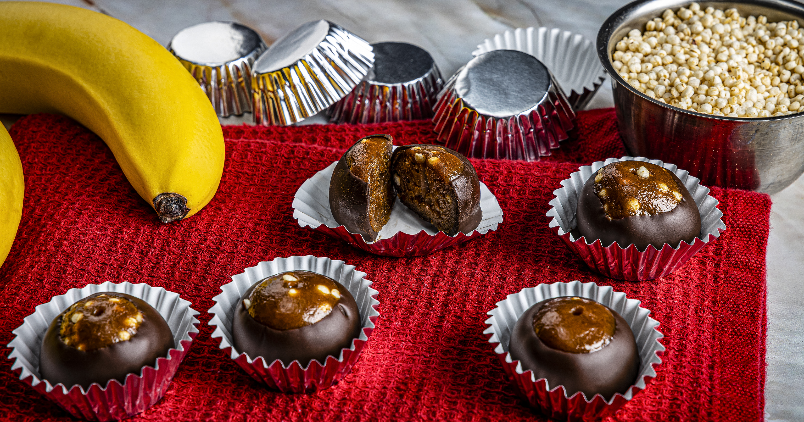 - Form banana mixture into 22 (1-inch) balls (about 1 tablespoon each); place on 1 prepared plate and freeze 2 hours or until firm.