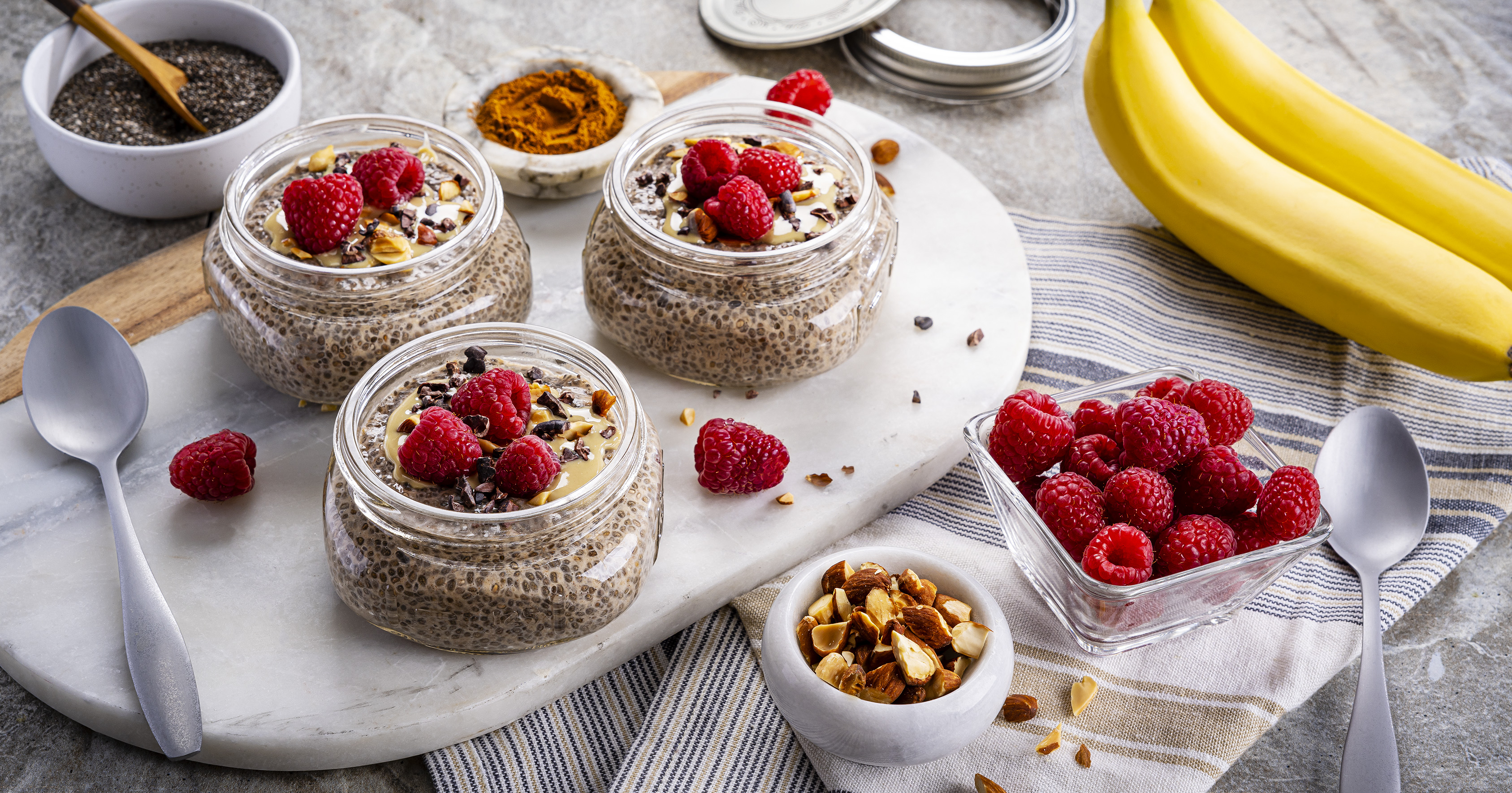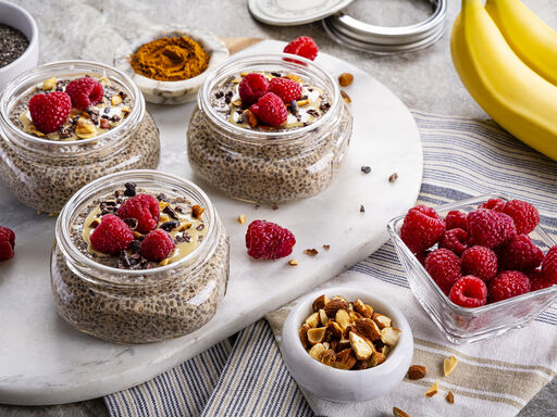 - Whisk banana, milk, chia seeds, agave nectar, vanilla extract and cinnamon in a large bowl; divide into 4 (8-ounce) glass jars with lids. Seal jars; refrigerate at least 8 hours or up to overnight.