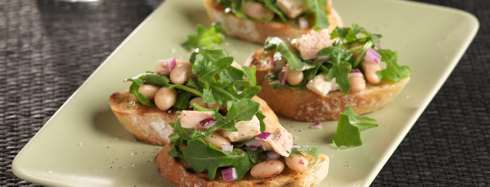 Bean Tuna and Arugula Grilled Crostini