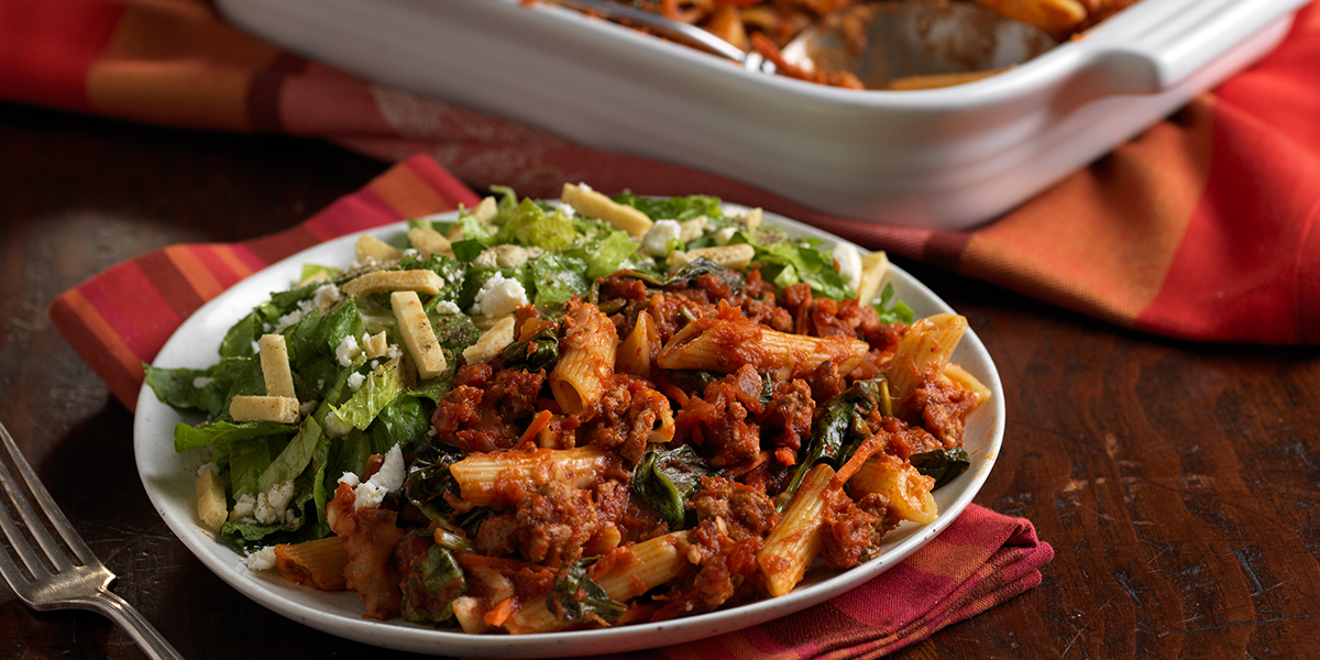 - Stir pasta sauce, carrot, and spinach into turkey mixture, cooking 10 minutes or until heated through.