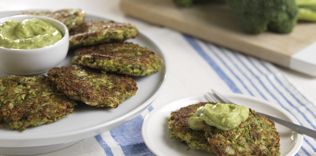Broccoli & Zucchini Latkes with Avocado Dip