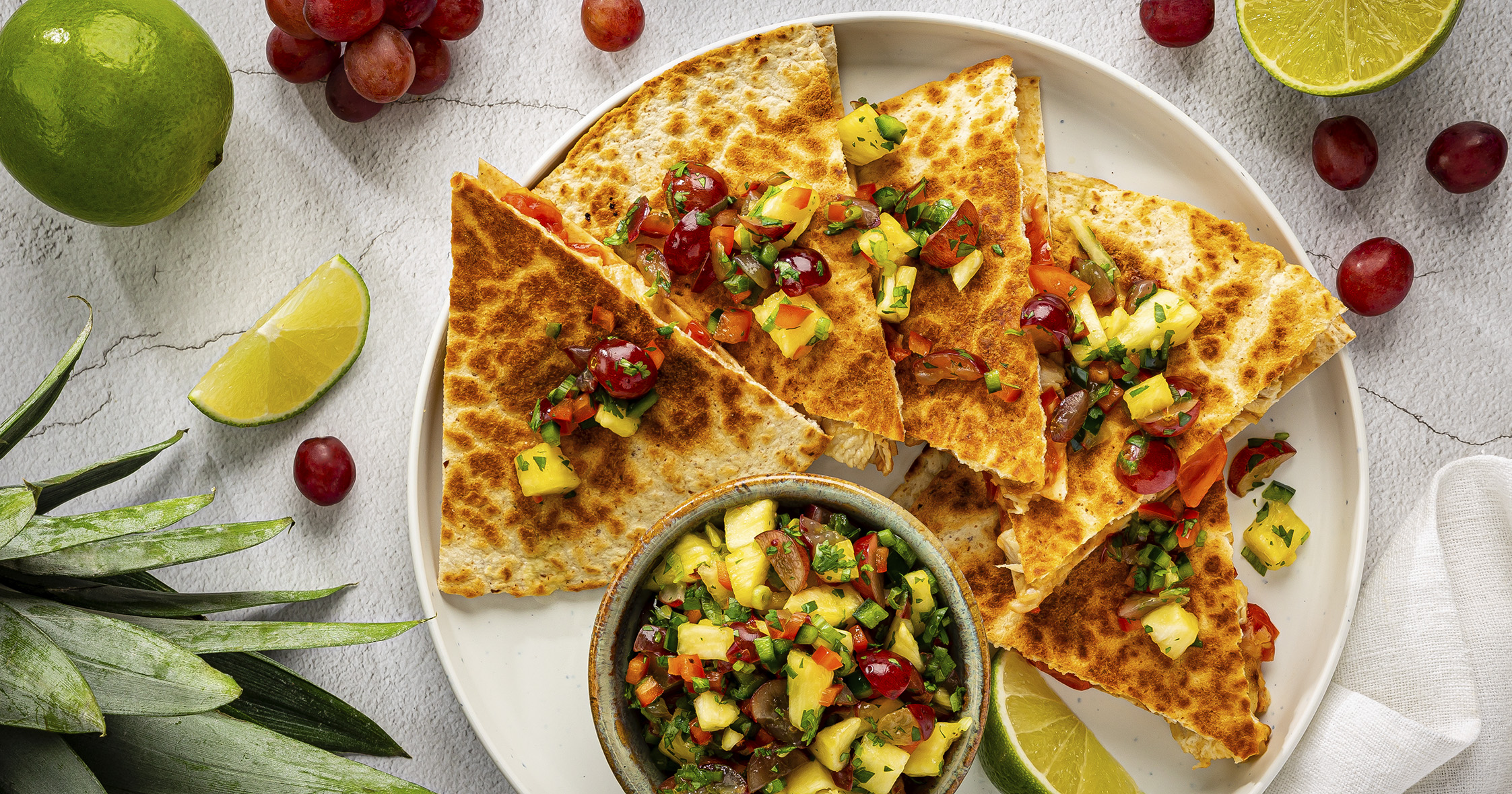 Chicken Quesadillas with Pineapple Grape Salsa