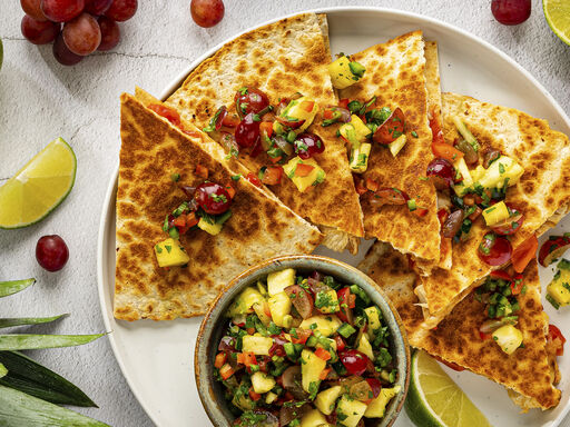 4. Cut each quesadilla into 6 wedges; serve with pineapple grape salsa.