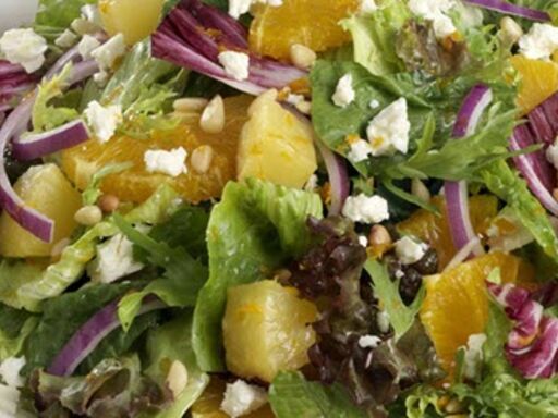Sweetness from the citrus and a slight crunch from the onion and nuts makes a pleased palate.