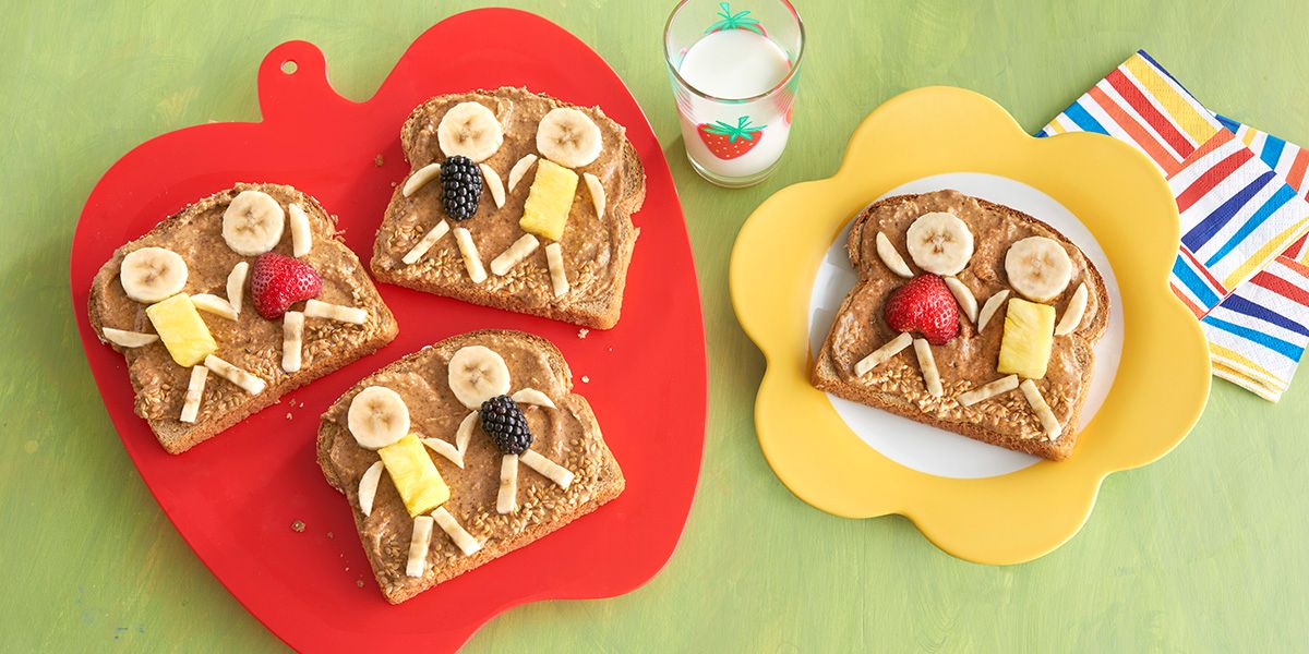 - Make the Dole Kids: cut 8 slices and 32 matchsticks from banana. Arrange one strawberry half and a pineapple chunk on two slices of toast and arrange the remaining strawberry halves and blackberries on the remaining slices. Place a banana slice “head” at the top of each piece of fruit and arrange 4 banana matchsticks around each kid for arms and legs. Sprinkle flaxseed along the bottom edge of the toast, under the Dole kids’ feet.