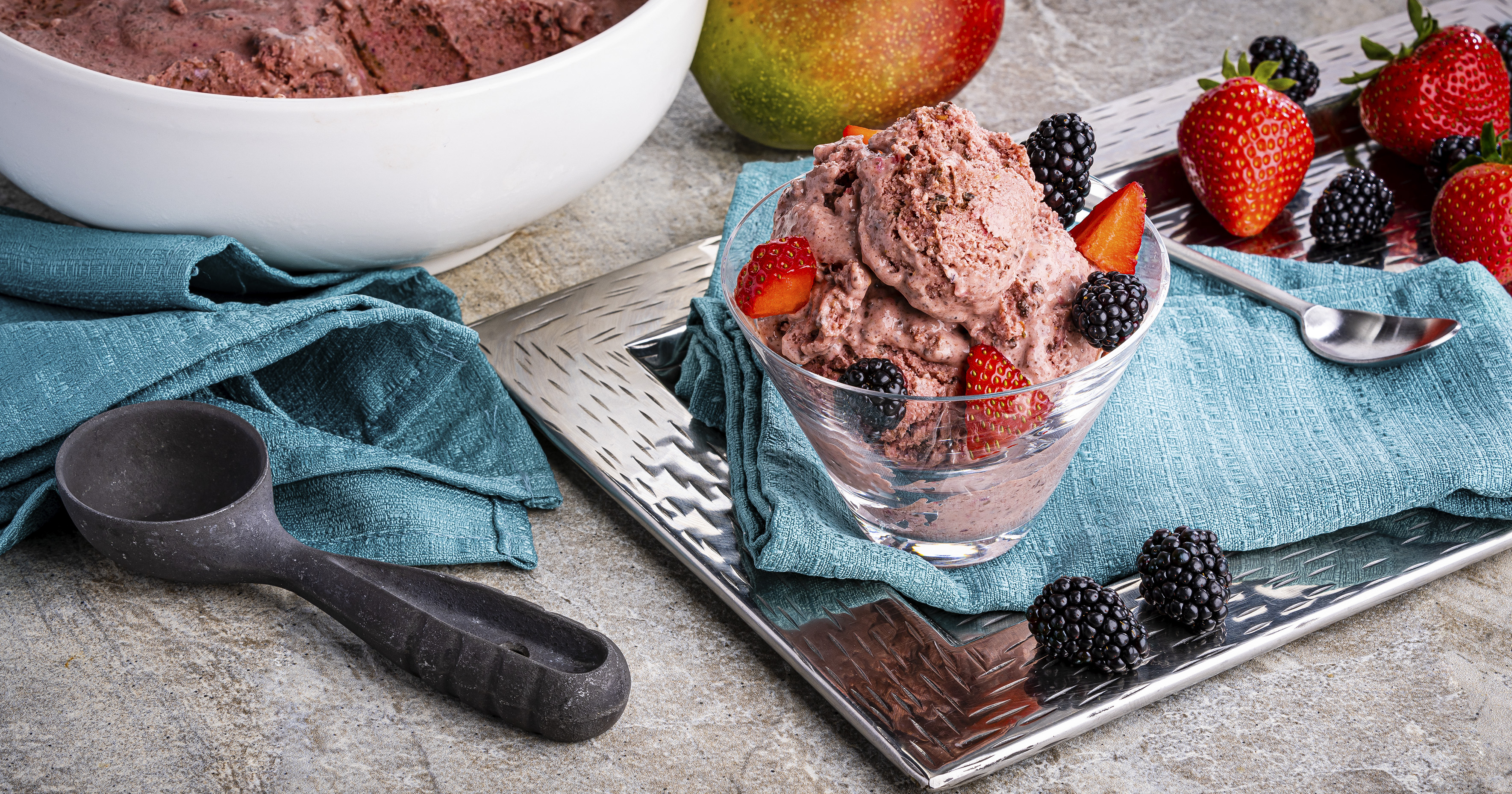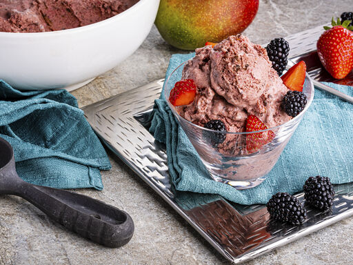 2. Let ice cream stand at room temperature 5 minutes before serving; serve garnished with strawberries and/or blackberries, if desired.