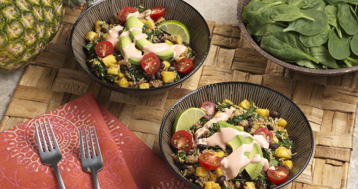 Stir kale mix, black beans and pineapple into skillet. Heat 3 to 4 minutes until heated through and broth is completely absorbed.