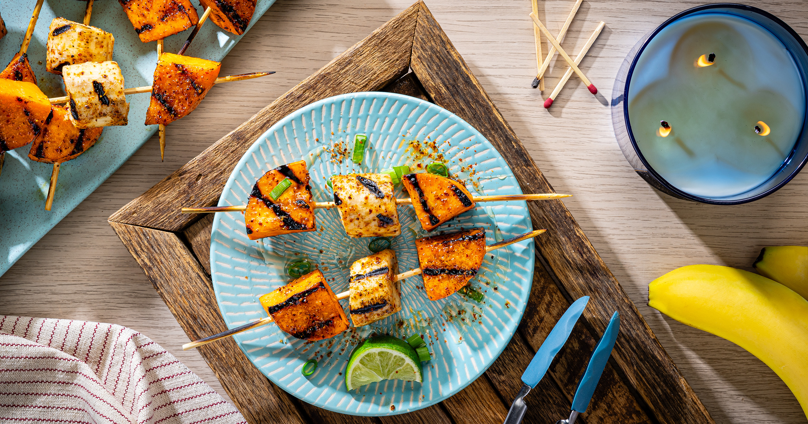 Grilled Chile Lime Banana-Sweet Potato Skewers
