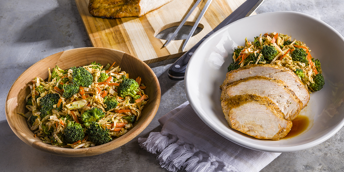 Grilled Pastrami-Spiced Turkey Breast with Smoky BBQ Broccoli Slaw