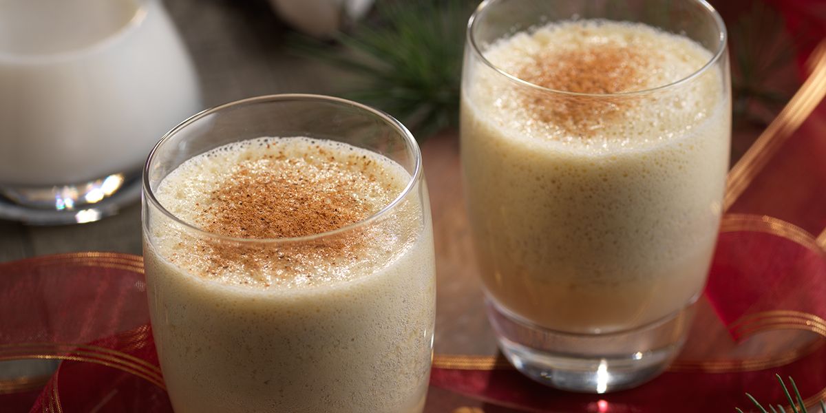 - Place eggs, bananas, maple syrup, vanilla, nutmeg, and cinnamon in blender. Pour boiling milk into blender. Cover; blend until thick and smooth. Chill. Serve; sprinkle with nutmeg if desired.