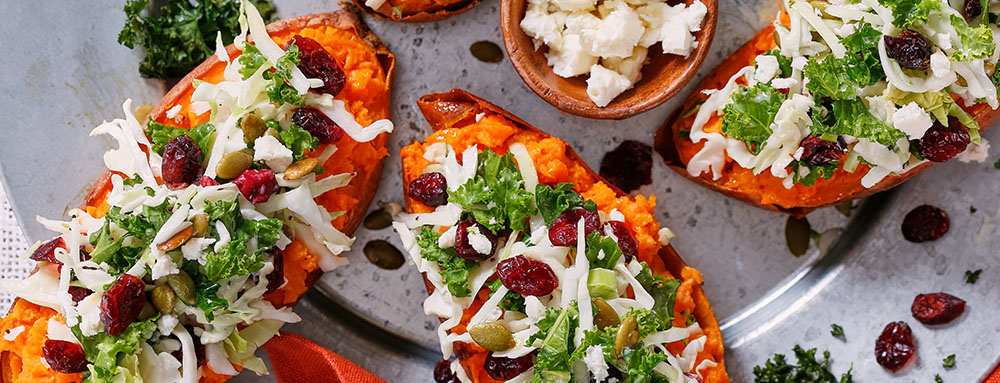 Kale & Cranberry Stuffed Sweet Potatoes