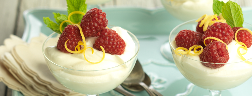 - Spoon ¼-cup Lemon Clouds mixture into each of four tall glasses, layer with ¼-cup raspberries, repeat layering of Lemon Cloud mixture and raspberries until all used. Serve.