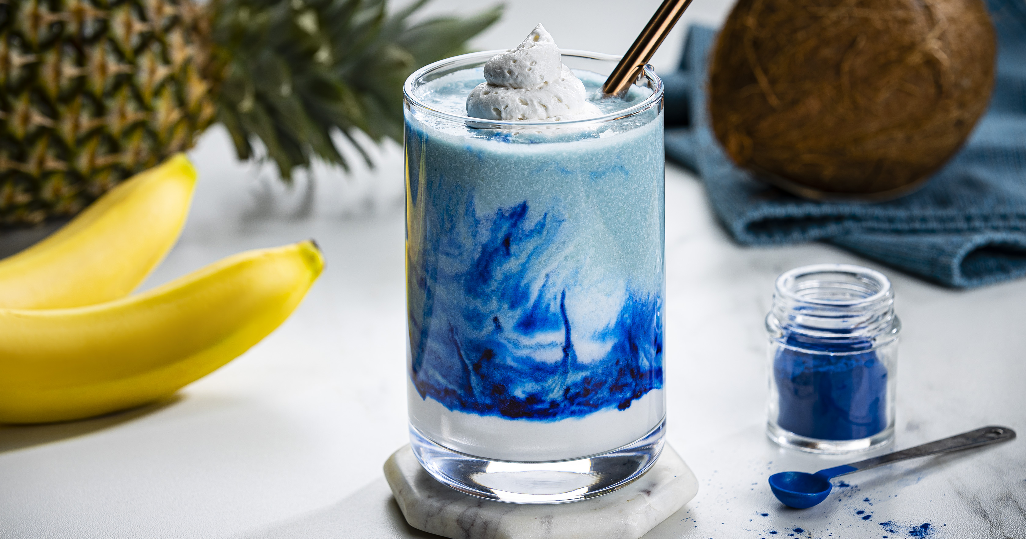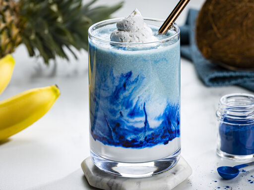 1. Whip coconut cream with fork or small whisk in glass until thick. Sprinkle with ½ tsp blue spirulina