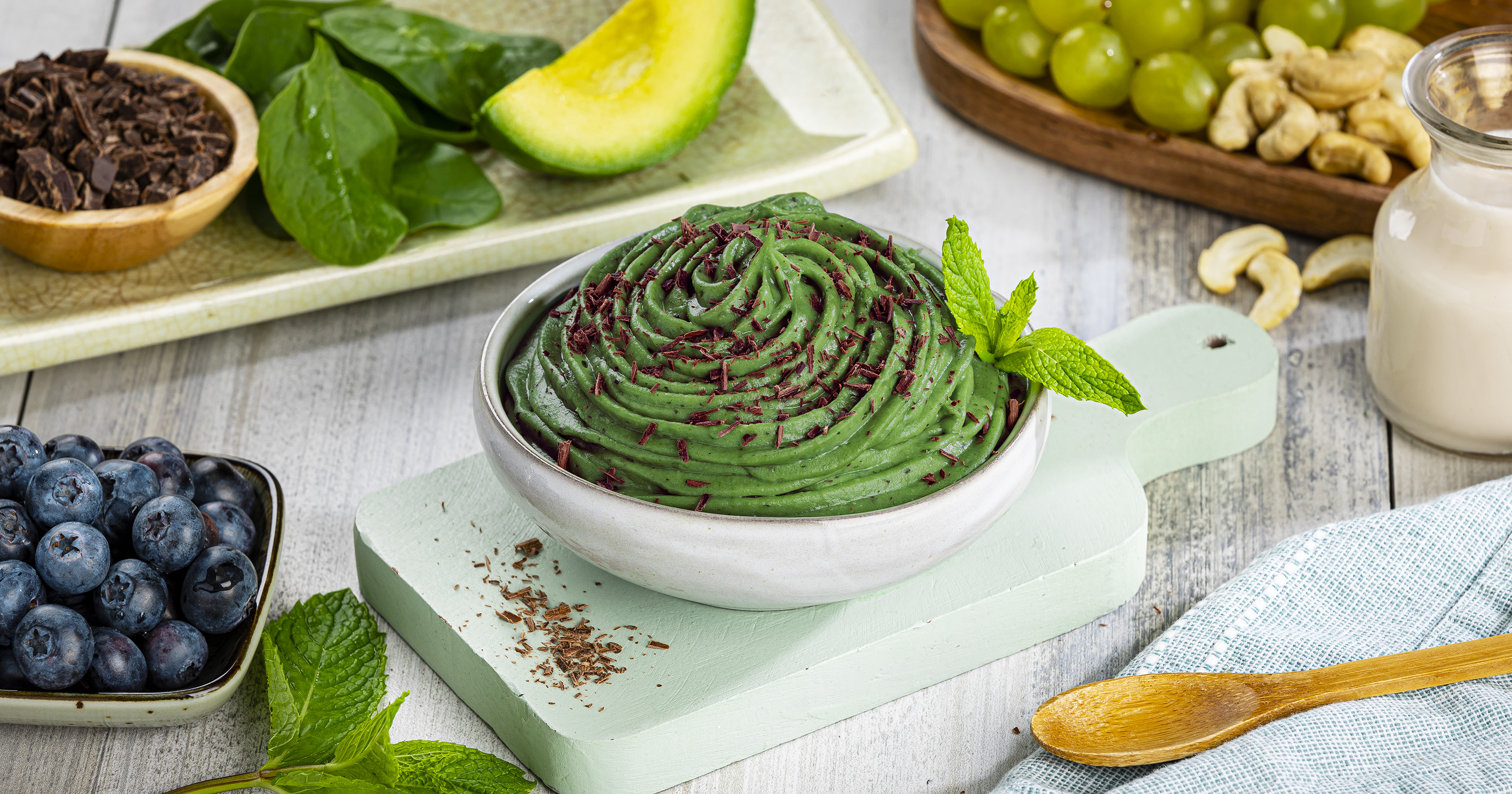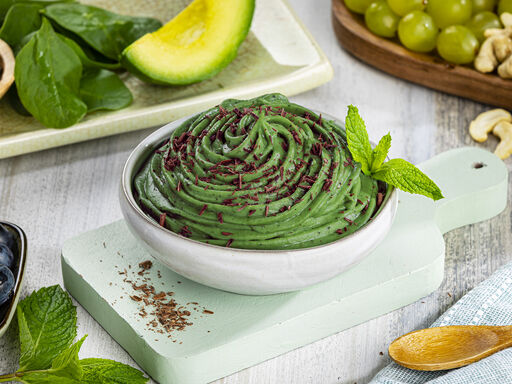 1. Purée bananas, avocado, grapes, milk, spinach, mint leaves and spirulina in a blender on high until smooth. Makes about 4 cups.