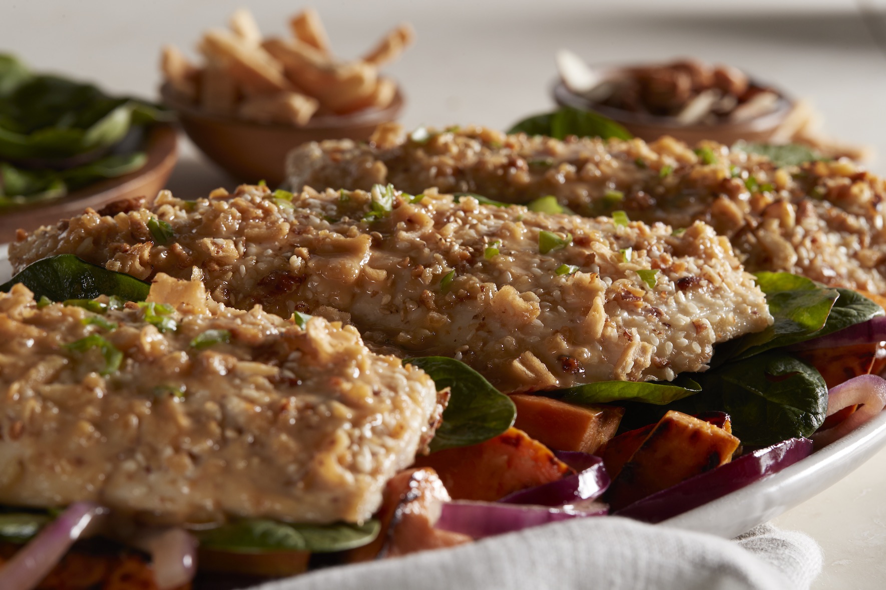 - Stir baby spinach, baby red chard and carrots from Kit into potato mixture; push to 1 side of pan and place snapper on opposite side. Brush snapper with 2 tablespoons tamari mixture; press cashew mixture onto snapper. Roast snapper and vegetables 10 minutes or until internal temperature of snapper reaches 145°F, potatoes are tender and spinach mixture is wilted. Makes about 4 cups vegetables.