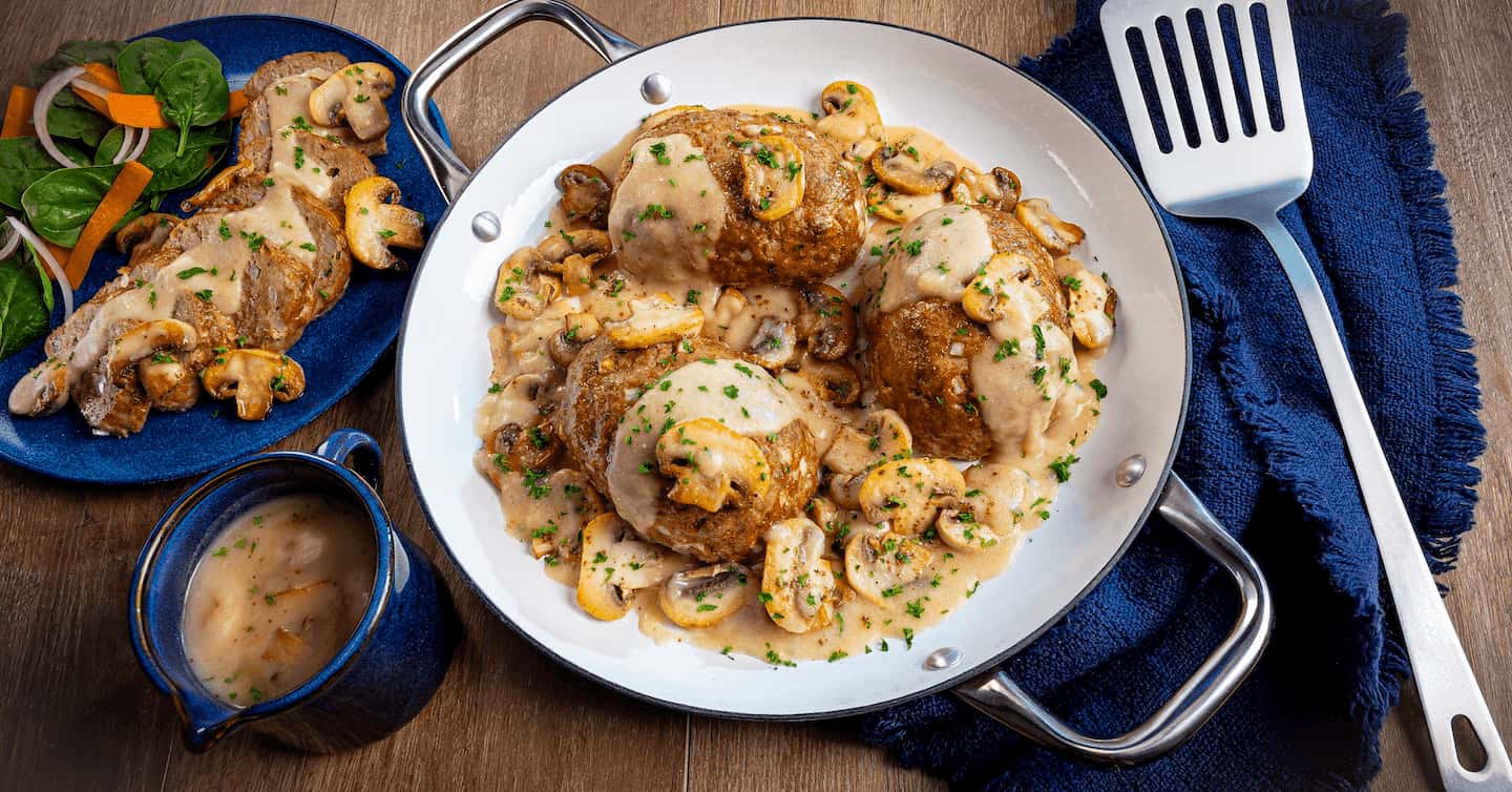 To freeze loaves, prepare recipe through step 2, but do not bake; freeze 2 hours or until frozen. Wrap loaves tightly with plastic wrap and freeze in freezer-safe zip-top plastic bags up to 3 months. Thaw loaves in the refrigerator overnight then bake on a parchment-lined rimmed baking pan at 350°F for 40 minutes or until internal temperature reaches 165°F. Proceed with step 3 to prepare gravy.