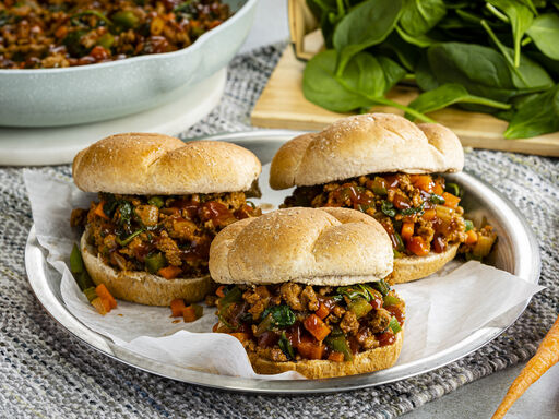 1. Heat a large nonstick skillet over medium heat; spray with nonstick cooking spray. Add carrot, onion and pepper; cook 5 minutes or until vegetables are tender, stirring occasionally. Add turkey; cook 7 minutes or until browned, breaking up turkey with the side of a spoon. Add spinach; cook 2 minutes or until spinach is wilted, stirring occasionally. Stir in tomato paste; cook 1 minute, stirring frequently. Stir in ketchup, soy sauce, sugar, salt and 1 cup water; cook 5 minutes or until thickened, stirring occasionally. Makes about 3¾ cups.