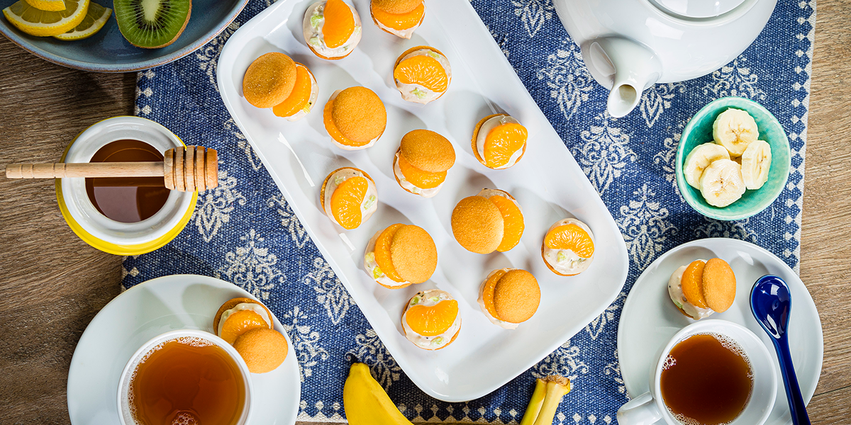Transfer cheese mixture to small zip-top plastic bag; snip bottom corner with kitchen scissors. Pipe 1½ teaspoons cheese mixture in center of 32 wafer cookies; place 1 orange slice in center of cheese mixture and top with remaining wafer cookies. Serve macarons immediately. Makes 32 macarons.