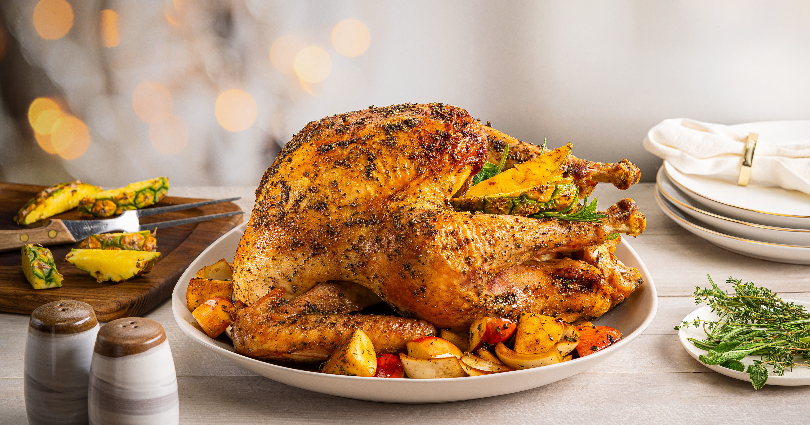 - 1 fresh or frozen turkey, thawed if necessary (about 12 to 14 pounds)