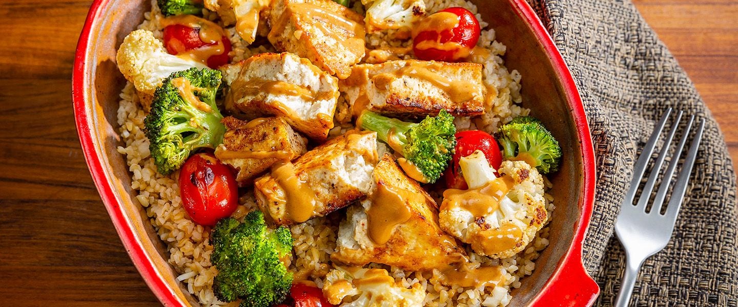 - Serve tofu and vegetables over millet drizzled with remaining peanut sauce.