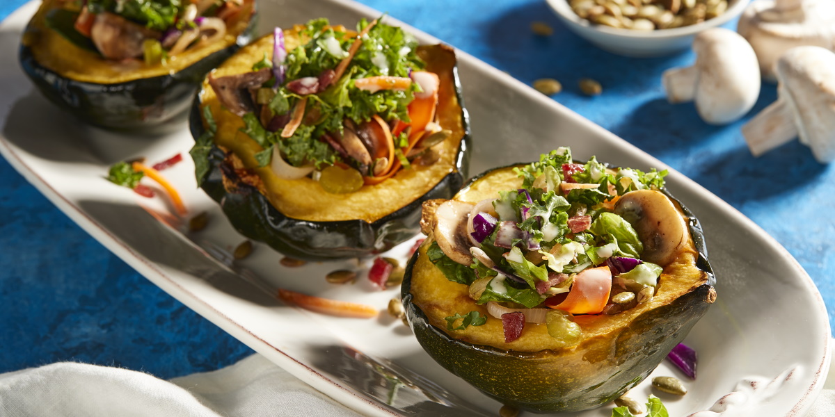 - Prepare Chopped Kit as label directs in a large bowl. Serve squash topped with Chopped Kit and pepitas.