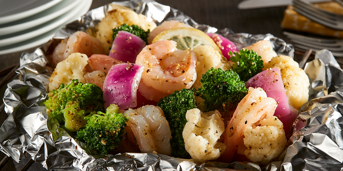 - Place packets, seam side up, on hot grill rack; cover and cook 12 minutes or until internal temperature of shrimp reaches 145°F and vegetables are tender-crisp, rotating once. Carefully open foil packs to serve.