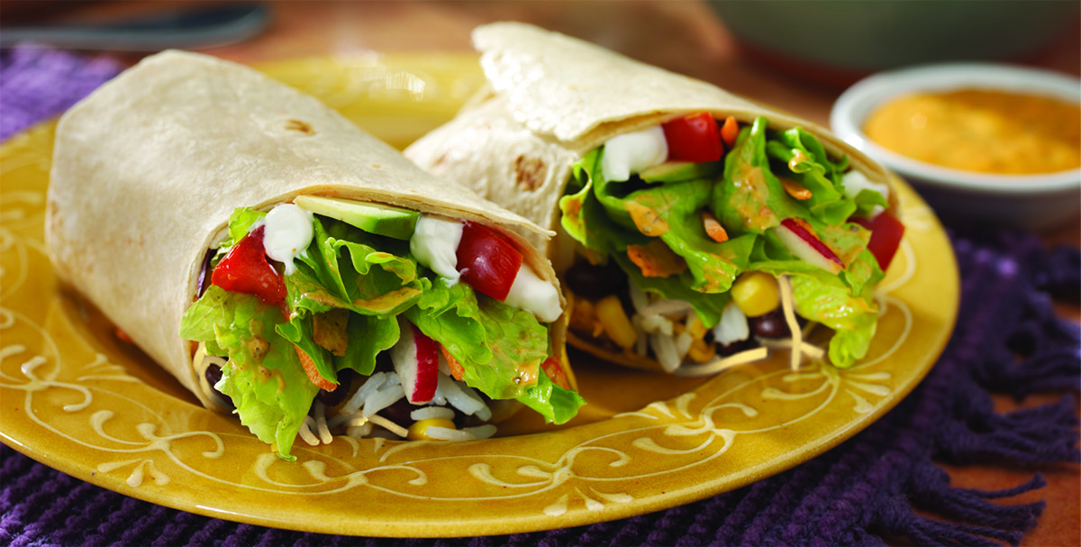Burritos or tacos? Sometimes life is filled with excruciatingly hard choices, but they have to be made. Luckily not this time, because this recipe combines the best of both worlds. It has many of your favorite taco fixings, like hunger-satisfying black beans, corn, tomatoes, creamy avocado, fresh lettuce and veggies, and sharp Cheddar cheese. But a few fabulous extras (courtesy of the DOLE® Southwest Salad Kit), such as our creamy Taco Ranch Dressing and crispy Cheddar tortilla strips, really bring the taco to the table. Roll it all up in a warm tortilla, and taco and burrito are one. Hopefully that takes care of your toughest decision of the day.