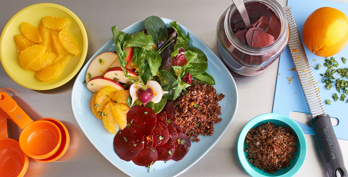 Flavor and spice go hand in hand in this colorful salad. Sweet, tangy citrus and mustard seed balance perfectly with pickled beets and nutritious DOLE Organic Spring Mix. It’s amazing how easily thinly sliced pickled vegetables can add a dynamic taste and crunch to any seasonal produce. Make them the centerpiece of today’s salad or add them to tomorrow’s meal.