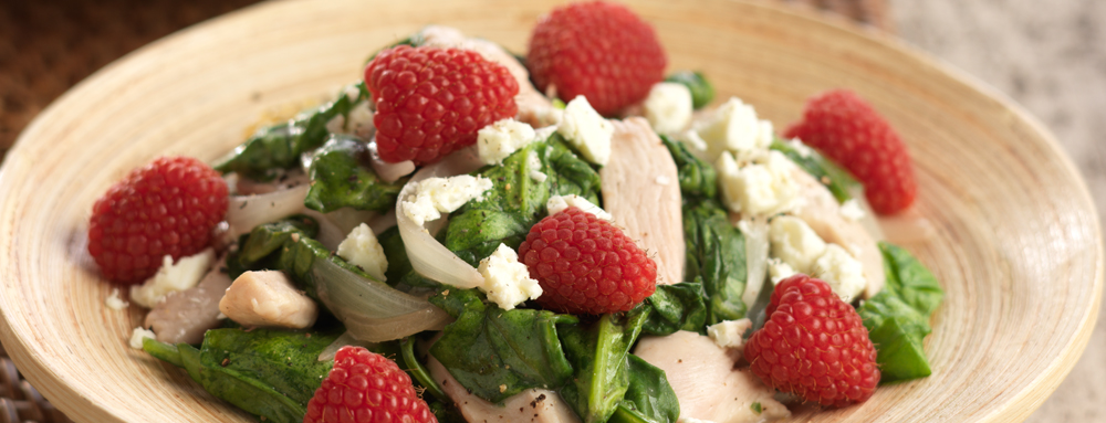 Spinach and Chicken Stir-fry Salad with Raspberries