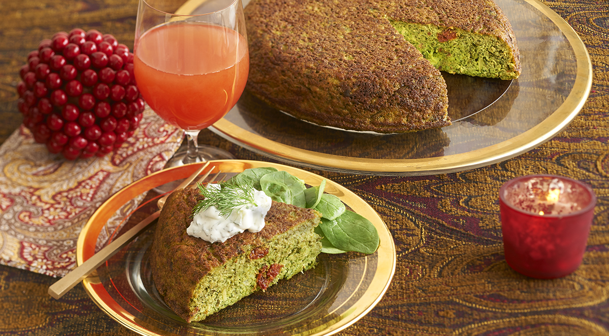 A classic Persian dish, kukus abound with fragrant herbs and fresh vegetables. This contemporary recipe uses baby spinach, edamame and egg whites for a lighter take that retains the rich flavors of the original. Simple to prepare, this kuku will delight for breakfast, brunch or lunch.
