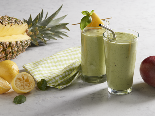 - Combine spring mix, avocado, yogurt, milk, mango, pineapple, basil and lemon juice in blender or food processor. Cover; blend until smooth.