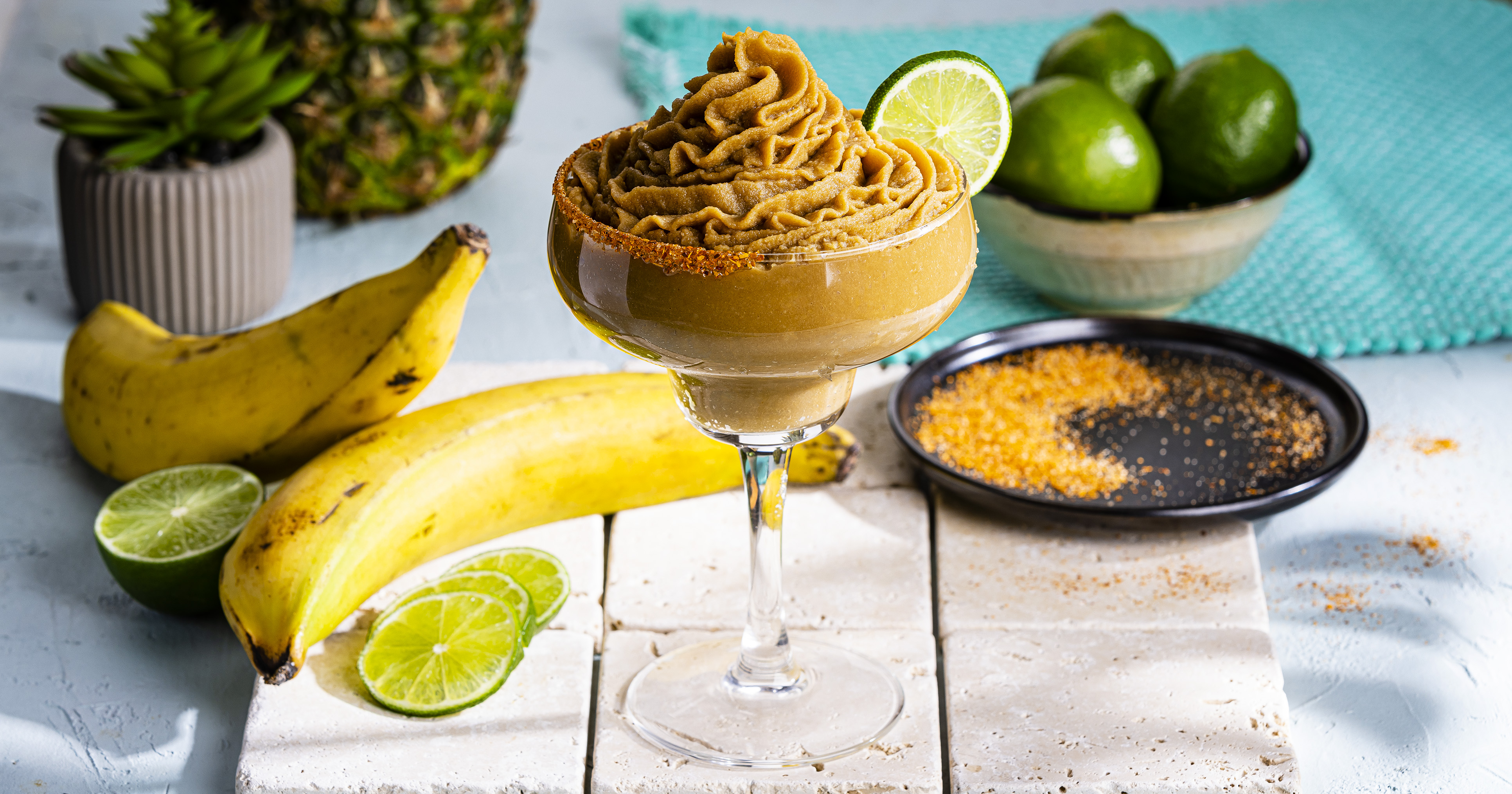 2. Purée banana, plantain, pineapple, milk, tamarind concentrate, lime juice and sugar in a blender on high until smooth. Makes about 3 cups.