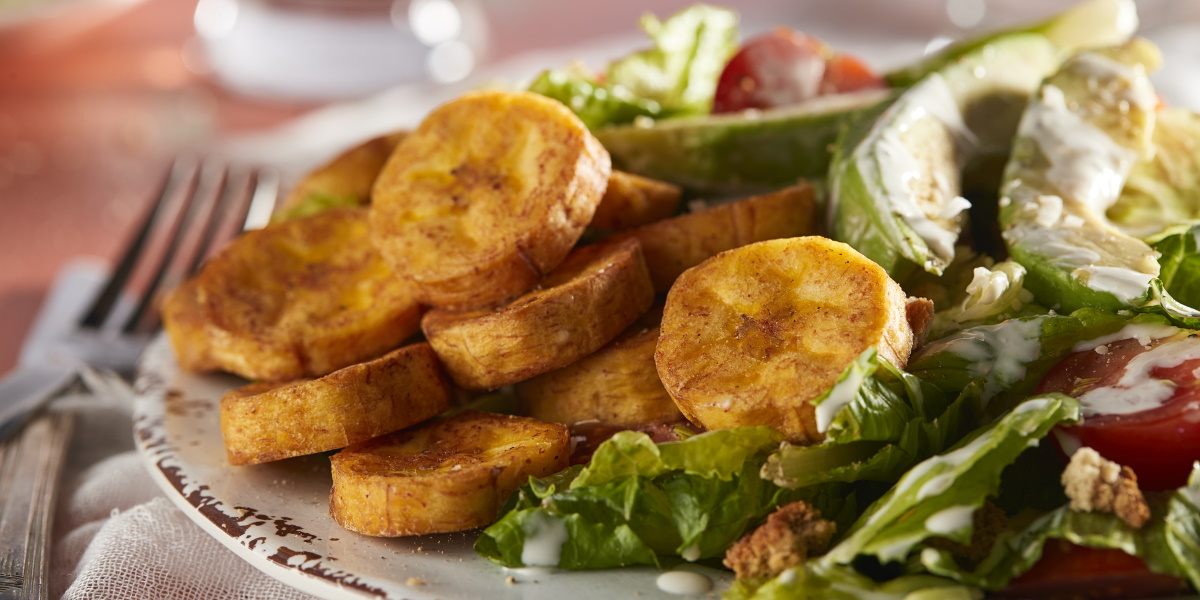 | Serving Size | 1¼ cups salad, 4 tostones |