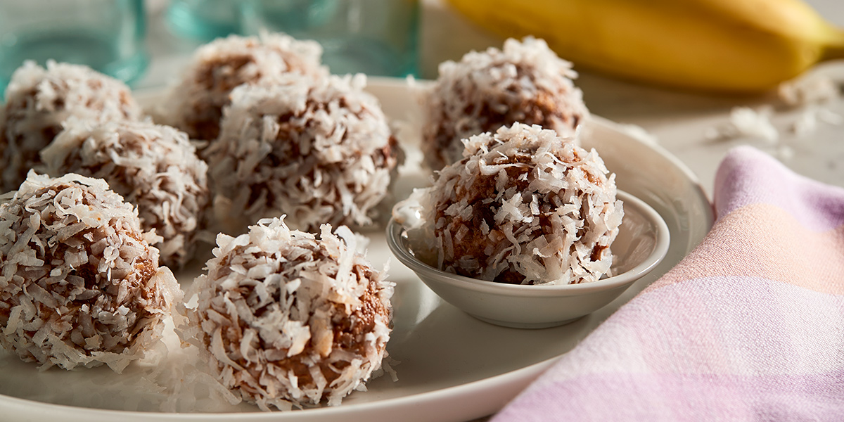 - Place coconut in a wide, shallow dish. Roll potato mixture into 1½-inch balls with wet hands, then roll in coconut and place on prepared pan; cover and refrigerate at least 2 hours. Makes about 24 bites.