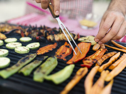 18. Some vegetables take longer to cook than others. If you’re preparing them kebab-style, keep the same types on each skewer (all peppers, all onions, and so on) so they cook evenly.