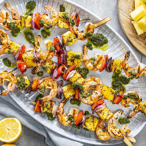 Grilled Shrimp-Pineapple Skewers with Summer Herb Sauce