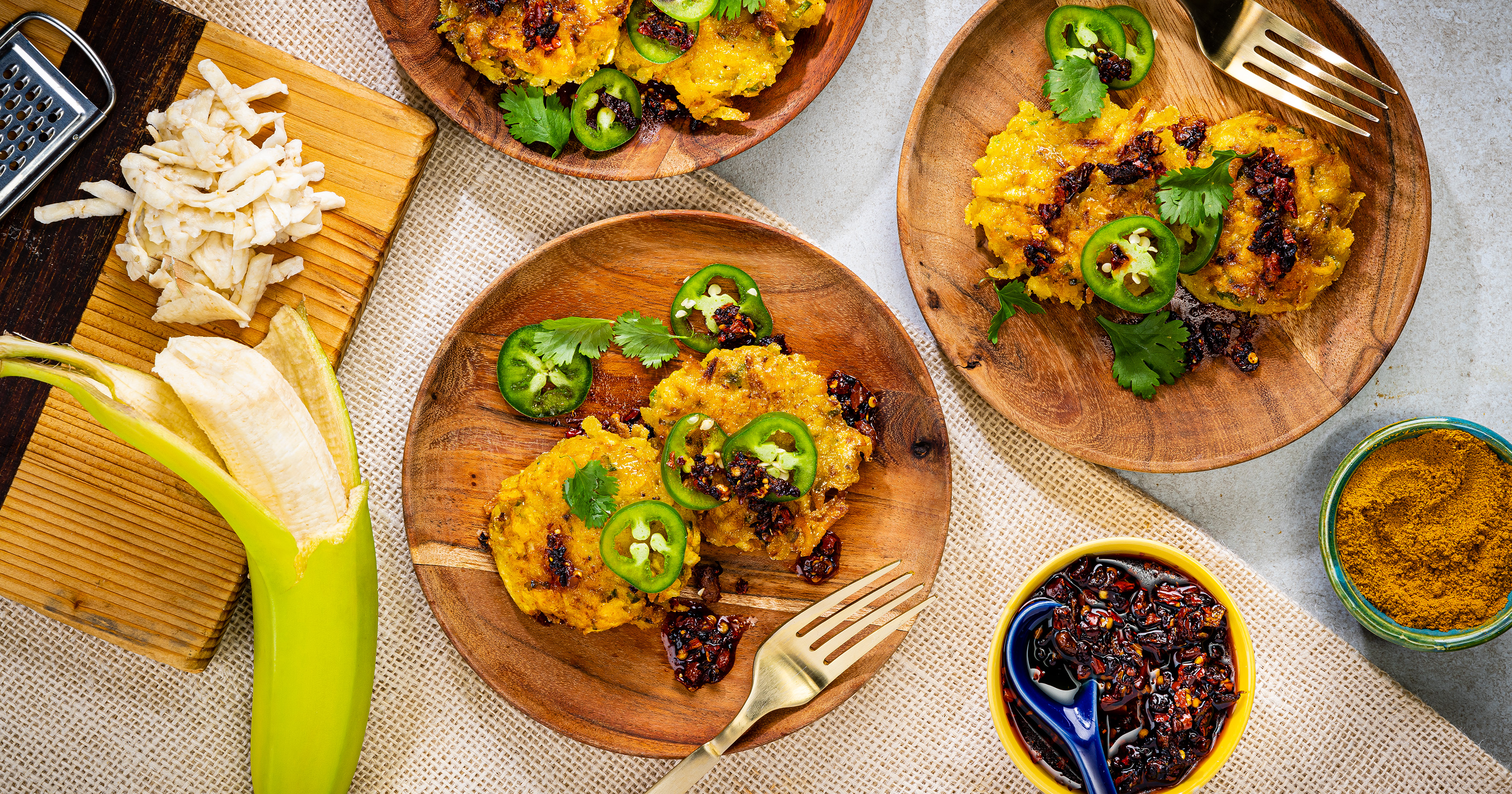 Curry Banana Fritters with Chile Crisp